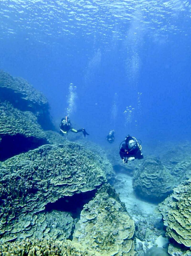 どちらも最高の透明度で、山盛りのカメ・・エイちょっと。