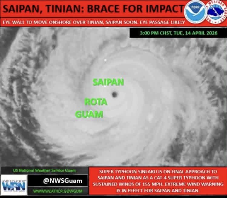 間もなく「台風の目」がサイパン上空に達するようで
