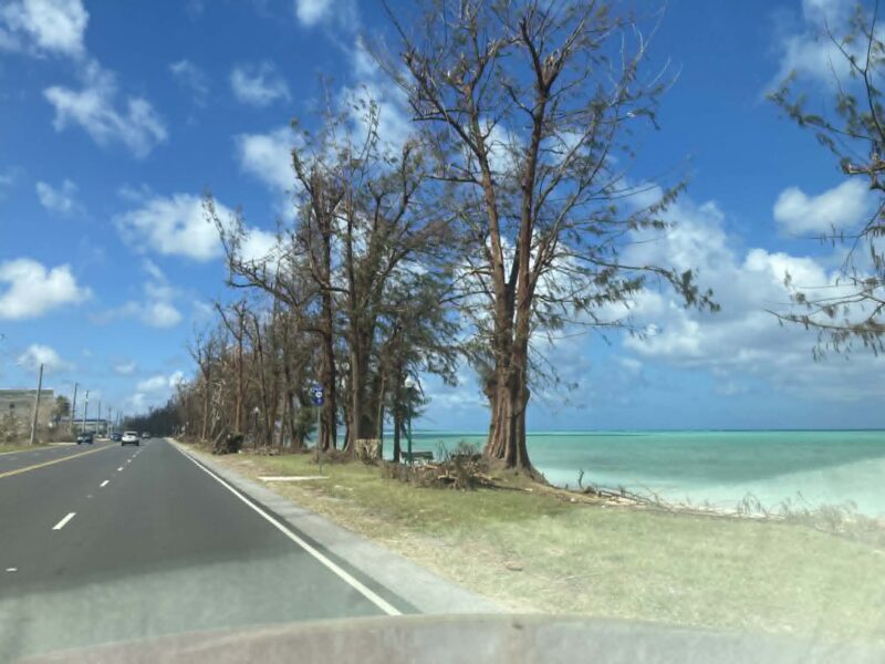 海沿いは葉っぱがもぎ取られております。