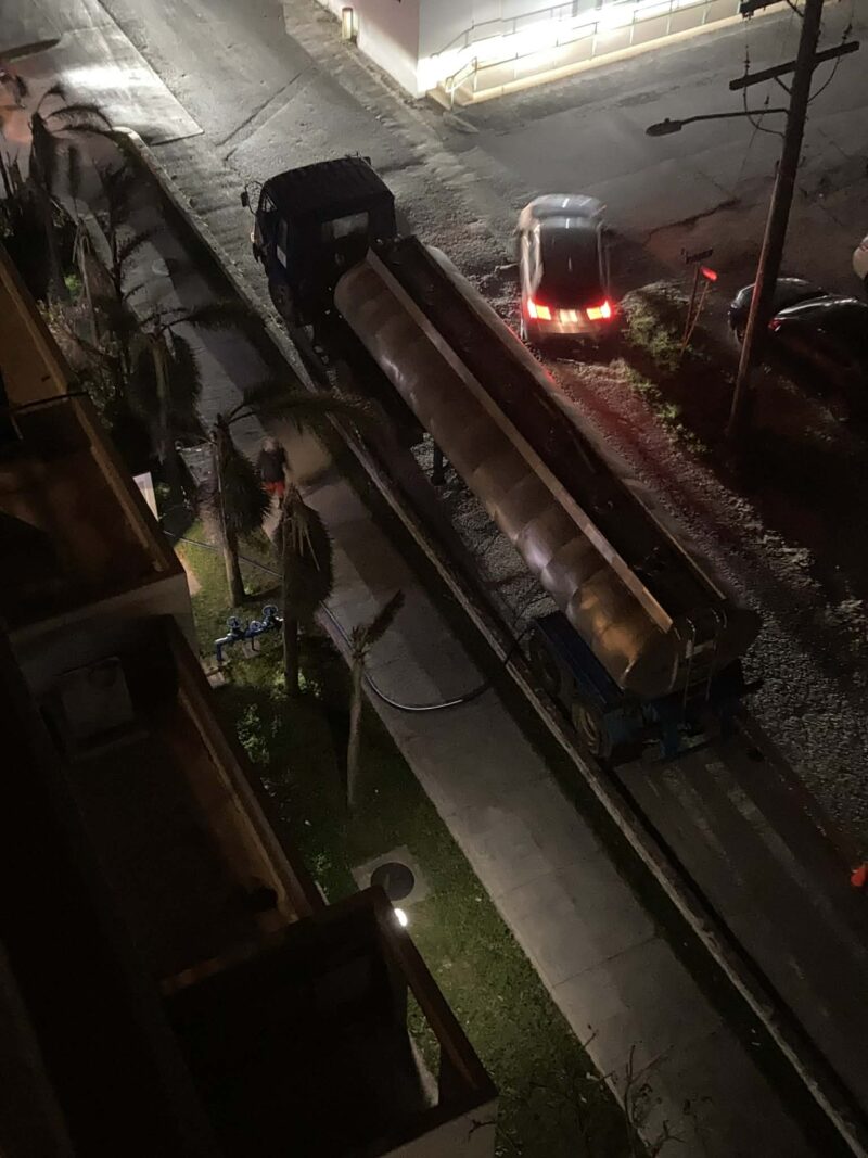 昨夜の大型給水車による「希望の水」はどこへやら、