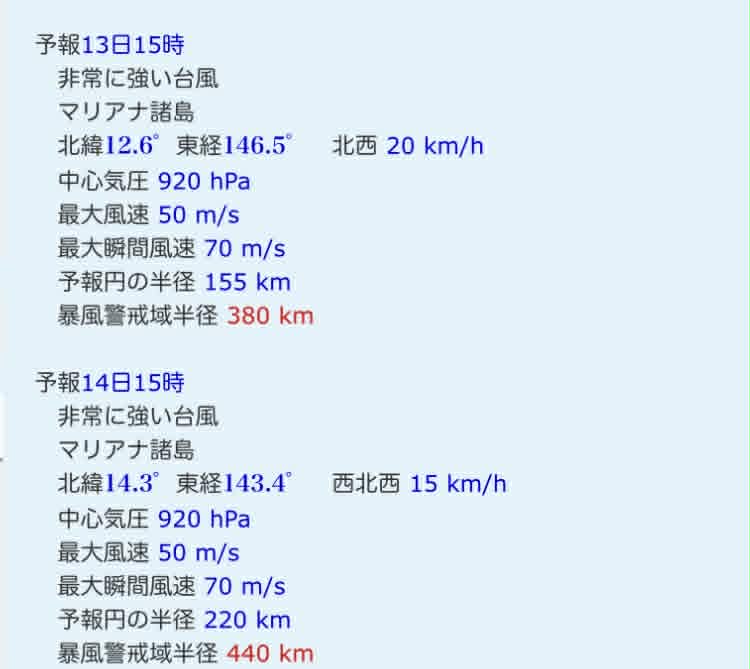 920hpa,このサイズの台風は久しぶりだ。